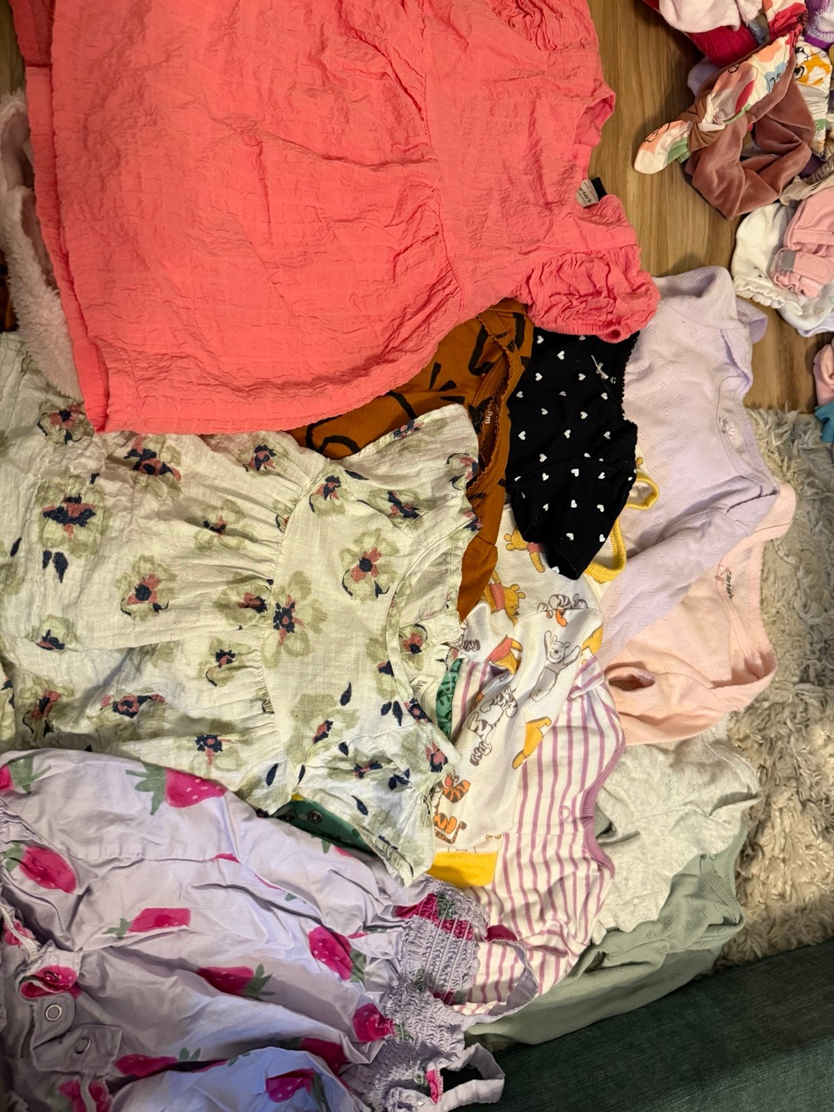 Mix of nb-12 month baby girl clothes, socks, shoes, mittens and headbands. All gently worn and some never worn. About 75 clothing items plus the big bag of accessories most of the accessories have never been worn.