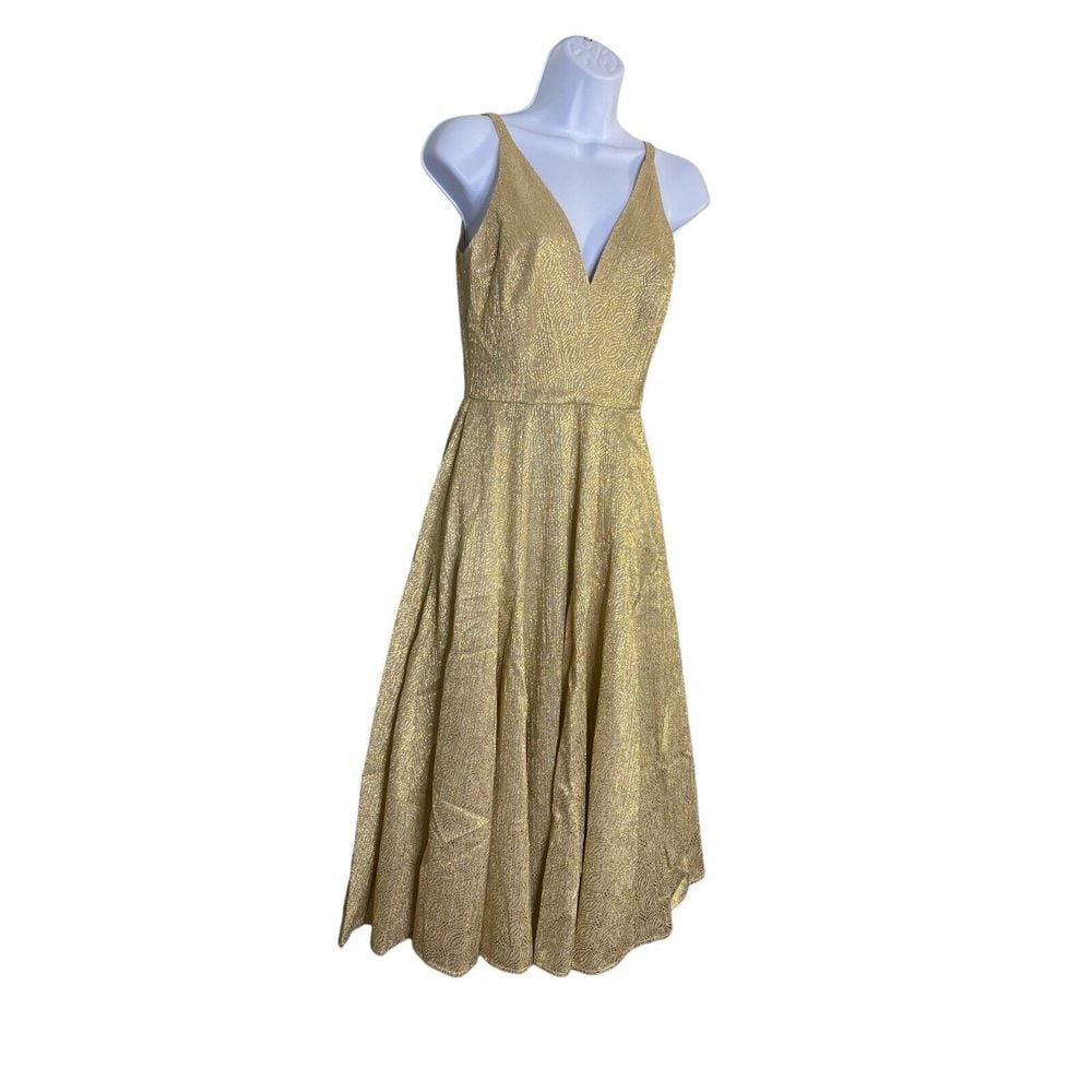 Dress the Population Womens Delilah Plunging A-Line Party Dress Gold Size XS