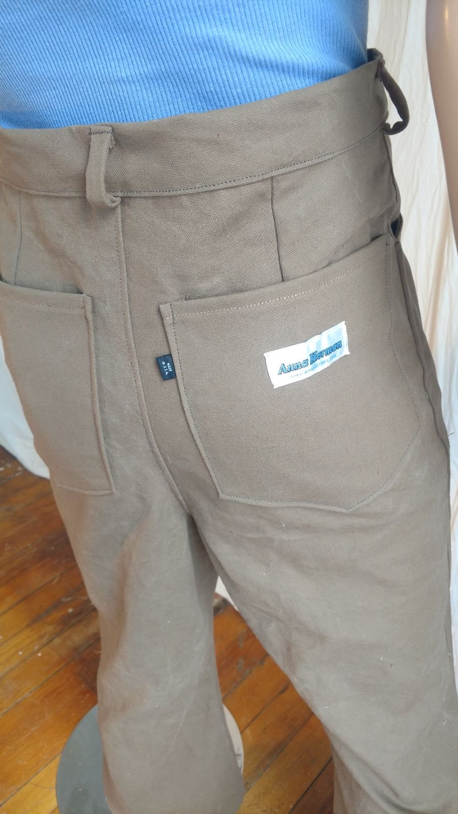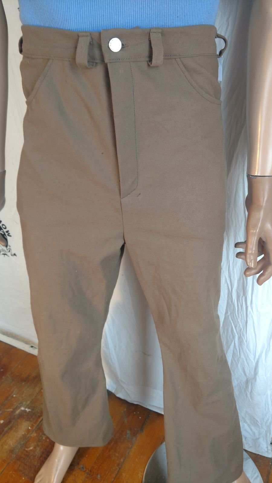 High waisted jeans bell bottoms pants tan cotton canvas 32 X 32 hip is 39" , zip fly , front and back pockets nwt An Anna Herman label . These are actual waist 32", The bells are 11" wide , made in USA we shop fast free and plastic free. I am going to make other sizes. Just ask me . Designer Anna Herman