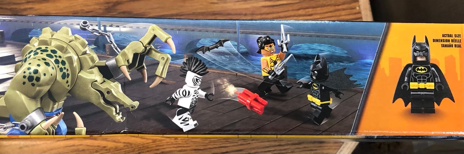 Includes three minifigures, Batman, Zebra-Man Tarantula, Killer Croc big figure