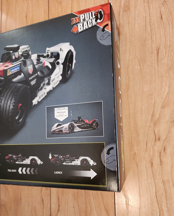 The LEGO Technic DIY car is a faithful replica of the real Formula E Porsche racing car and even features sponsor logos