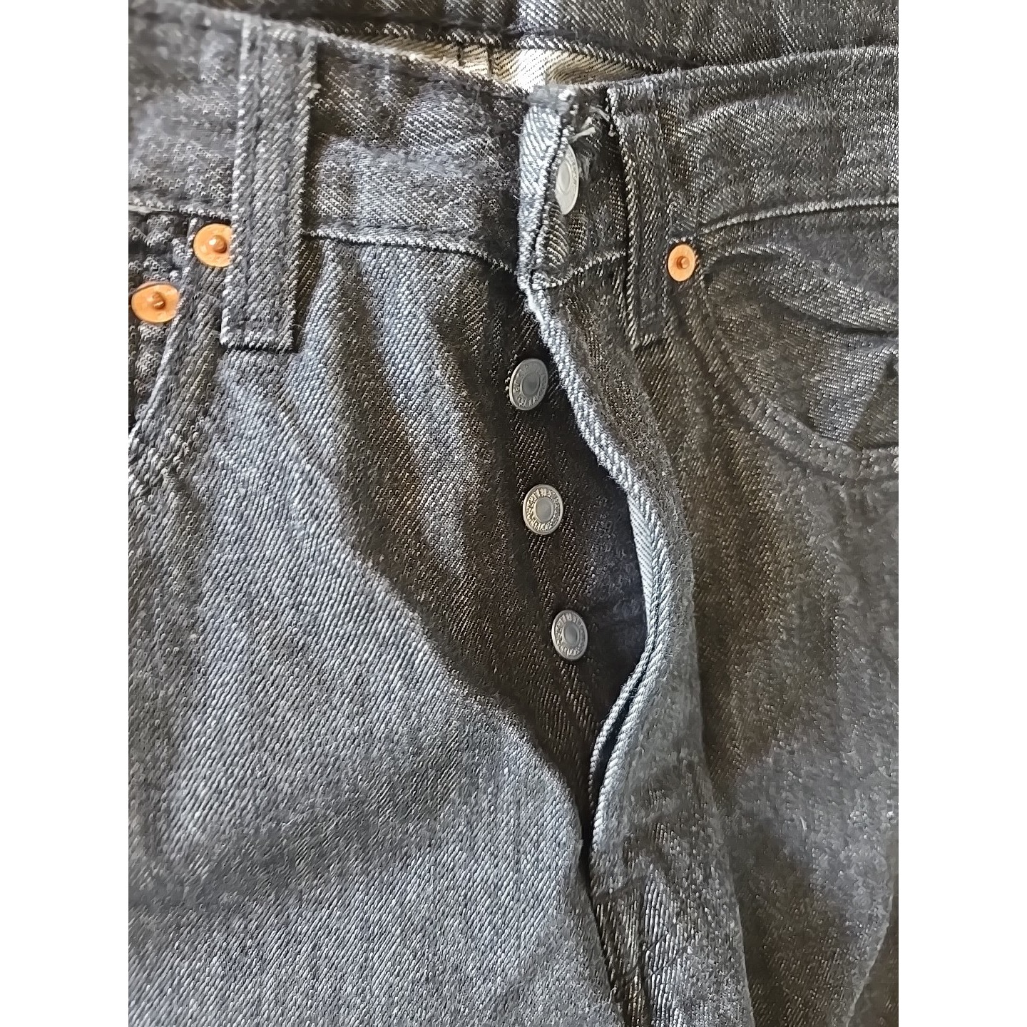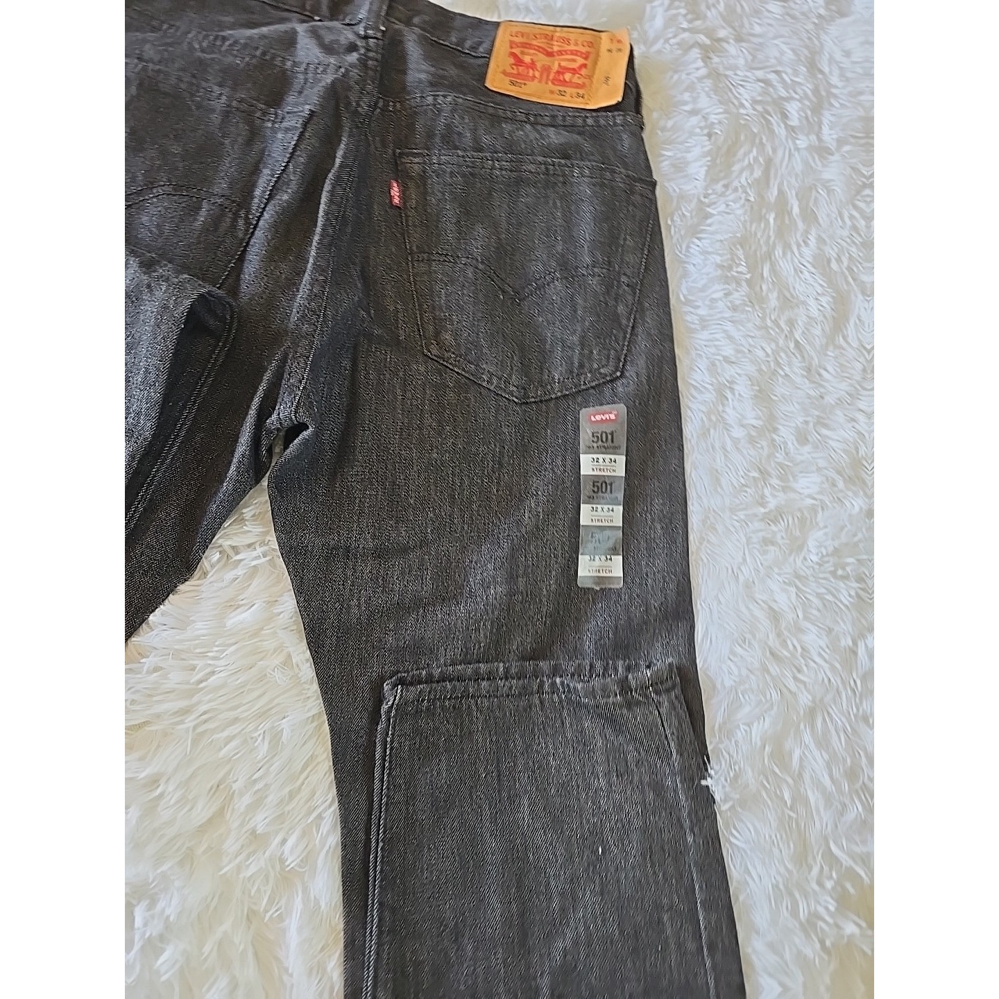 The new Men's Levi's 501 Button Fly Original Fit Black Jeans features a classic solid black color with a dark fabric wash. Made with a comfortable mid-rise fit and a 5-pocket design, these jeans have a button closure and a regular straight style. Perfect for the winter, fall, and spring seasons, these machine washable jeans are easy to care for and designed for all-day comfort. Showcasing the iconic Levi's logo, these jeans are a timeless wardrobe staple for any man's closet. SEE PHOTOS FOR MEASUREMENTS