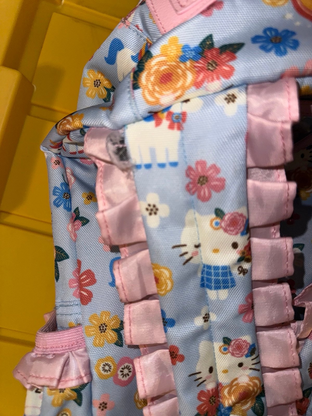 Hello Kitty is play due to strap torn that can be sewn. I did to my OG princess. Also HAS STAIN untreated under posh logo.