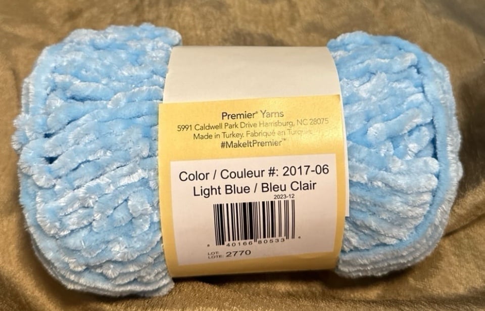 I have 12 NEW beautiful skeins (65 yards each) (60 m per skein) of Premier Just Chenille yarn color “LIGHT BLUE BleuClaire” #2017-06 Lot 2770. All of my items come from a SMOKE FREE and PET FREE home. If you have any questions, please ask. Enjoy :)