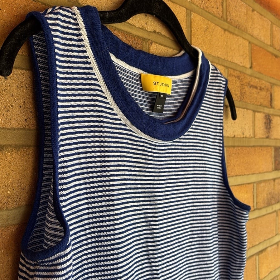 St. John Crew Neck Blue and White Striped Sleeveless Tank Top Rayon Wool M